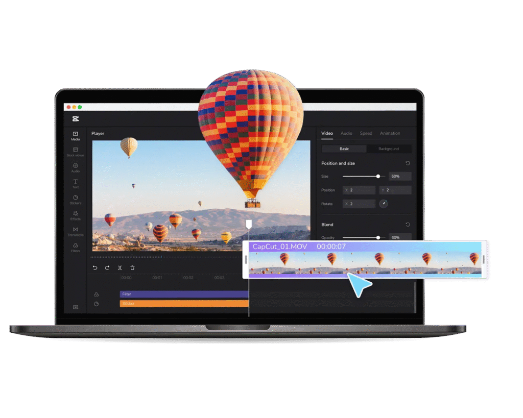 - Transitions and effects: Make your videos more engaging with smooth visual effects.